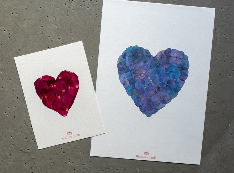 Cœurs, étoiles, ou toute autre forme qui résonne avec vous. Je donne vie à mes idées, vos idées à travers la beauté naturelle des hortensias bretons et autres fleurs / feuillages récoltés au fil du temps.