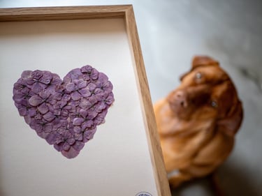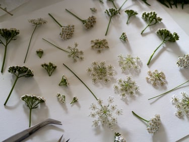 C'est naturellement que j'ai voulu prolonger la vie de ces merveilles éphémères. Grâce à la technique du pressage naturel, je leur offre une seconde existence, presque éternelle. Chaque fleur, chaque feuillage est soigneusement sélectionné lors de mes cueillettes, puis délicatement pressé et séchée pour préserver ses couleurs et sa délicatesse.