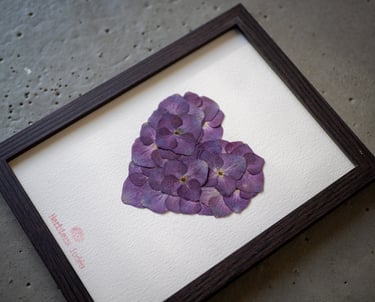 Chaque création personnalisée demande du temps : le temps de la cueillette, celui du séchage minutieux dans ma presse artisanale en bois (4 à 12 semaines selon les fleurs), et celui de la composition finale.