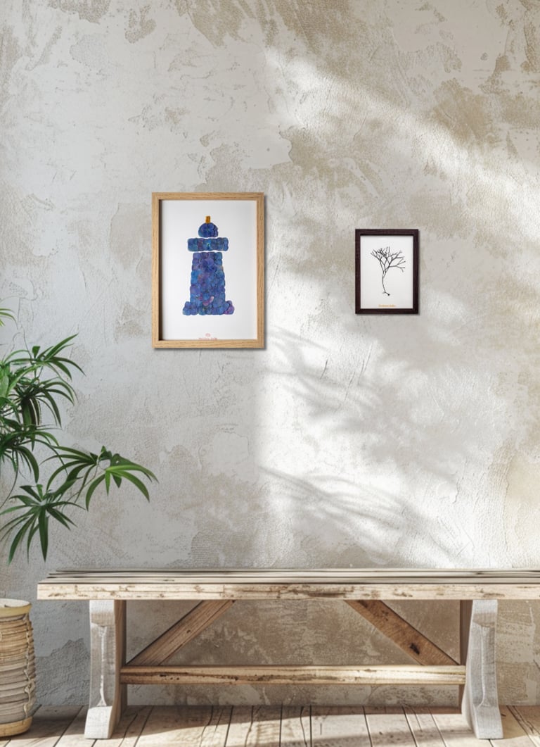 Que vous optiez pour une galerie murale spectaculaire, un accent apaisant dans votre chambre, une touche d'inspiration dans votre bureau, un accueil chaleureux dans votre entrée ou une atmosphère zen dans votre espace de méditation, les herbiers et alguiers artisanaux transforment votre intérieur en y apportant nature, beauté et sérénité.