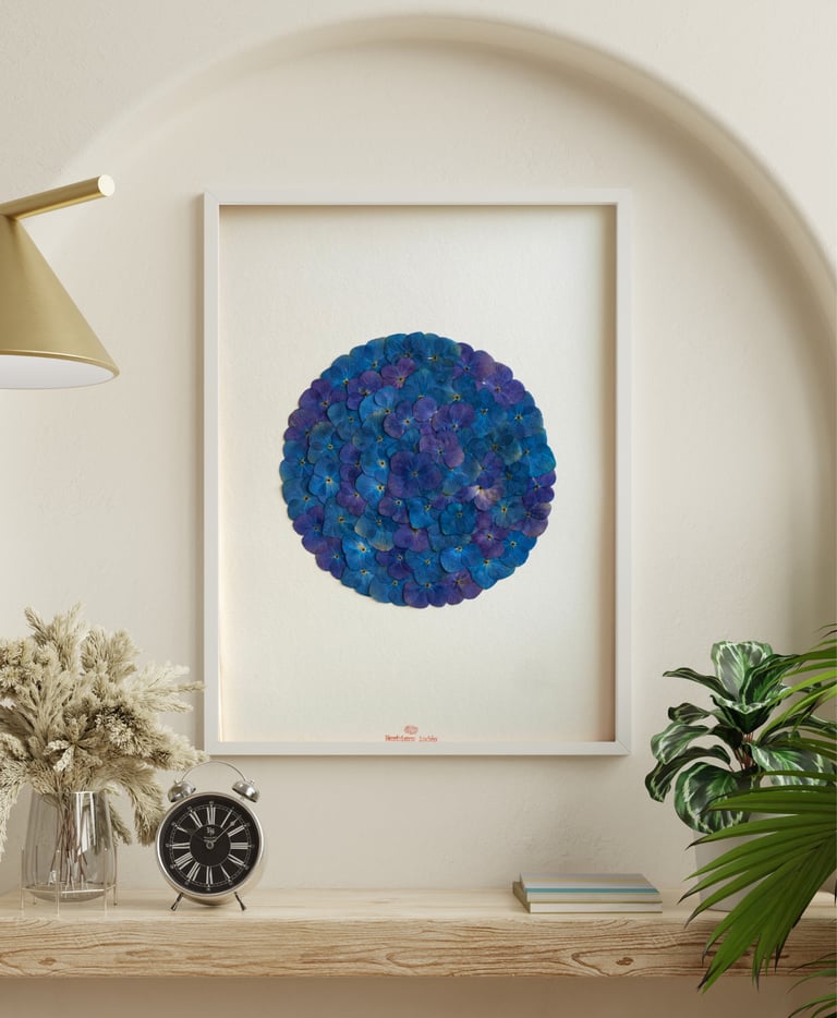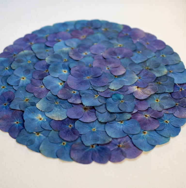 Les mandalas d'hortensias, avec leur géométrie circulaire parfaite et leur symétrie, constituent des supports de méditation visuelle exceptionnels. Dans la tradition bouddhiste et hindoue, les mandalas sont utilisés comme aids à la concentration et à la méditation. Contempler un mandala de fleurs pressées crée un pont entre ces pratiques ancestrales et une sensibilité contemporaine occidentale.