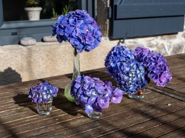 J'ai une affection particulière pour les hortensias : leurs couleurs changeantes, leurs formes généreuses, leur délicatesse me fascinent. Tout près de chez moi, à Paimpol, des champs d'hortensias surplombent la mer et la Baie. C'est un lieu qui m'inspire profondément et où j'aime beaucoup prendre des photos et réaliser des vidéos avec mon drone.
