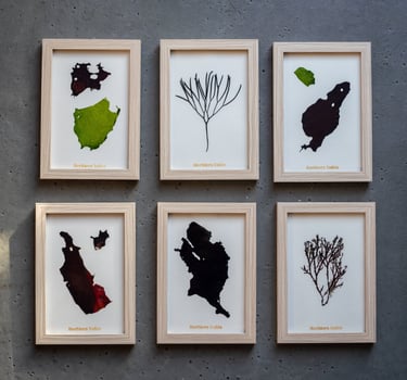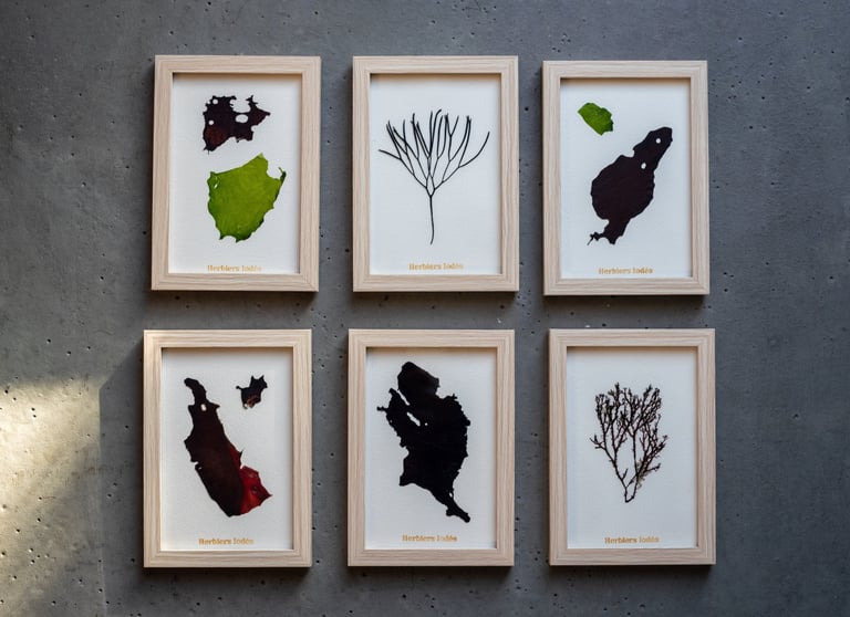 Un art breton ancestral que je fais renaître : des algues de nos côtes transformées en œuvres graphiques uniques.