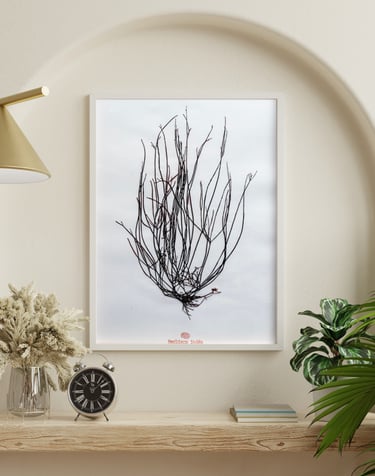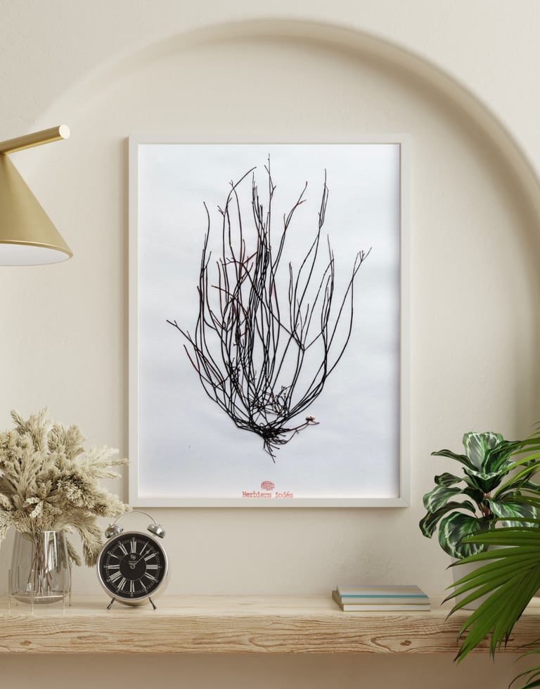 Les alguiers transforment instantanément l'atmosphère d'un intérieur. Leurs formes graphiques et organiques apportent une présence naturelle forte tout en restant épurées. Le contraste saisissant entre le noir profond, le vert lumineux ou le bordeaux chaleureux des algues et le fond crème du papier crée un impact visuel immédiat, que ce soit dans un salon contemporain, une chambre zen ou un bureau minimaliste.