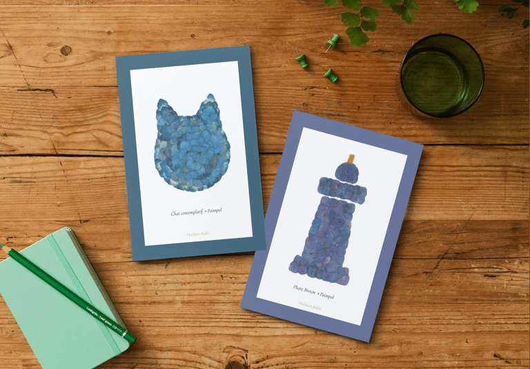 Des algues bretonnes aux hortensias des jardins côtiers, chaque création Herbiers Iodés devient une édition d'art accessible. Cartes postales et tirages Fine Art pour emporter un fragment de Bretagne.
