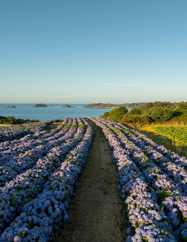 Principalement cultivés et cueillis dans mon jardin des Côtes d'Armor au coeur du Trégor-Göelo, ces hortensias capturent toute la poésie de ce terroir si inspirant. Du bleu profond au rose tendre, du blanc pur au mauve délicat, chaque nuance raconte une saison, une lumière, un instant entre terre et mer.
