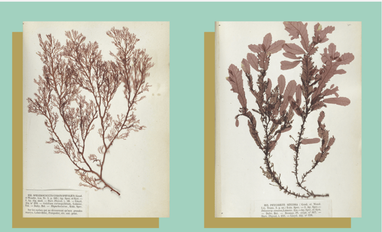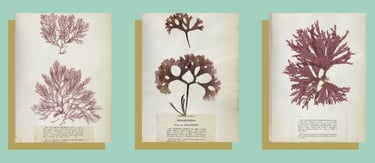 Lorsque j'ai découvert l'existence des alguiers des frères Crouan, j'ai été immédiatement fascinée par la beauté graphique de ces compositions. Les formes sculptées par l'océan, les ramifications complexes, les variations chromatiques du vert au bordeaux... Ces algues pressées possédaient une force esthétique qui n'avait rien perdu de son impact malgré le temps.