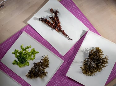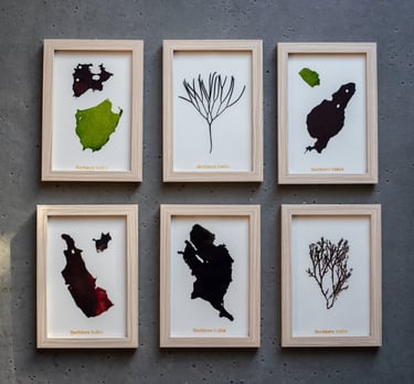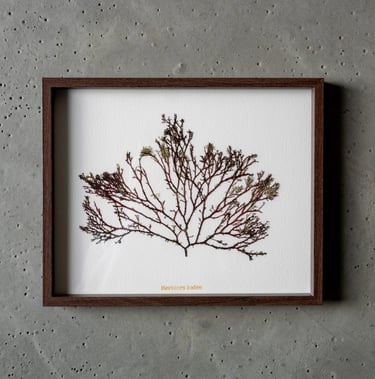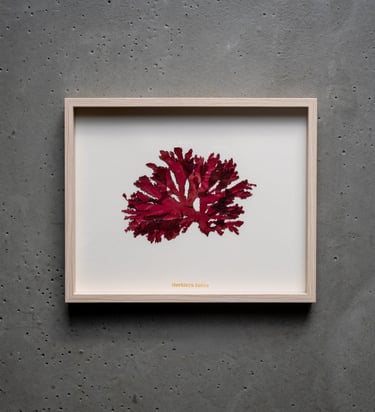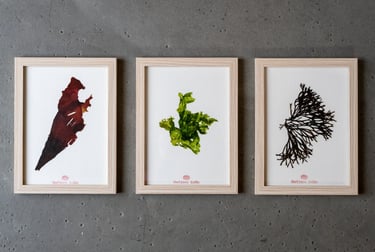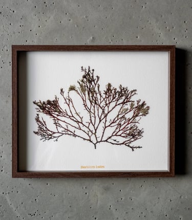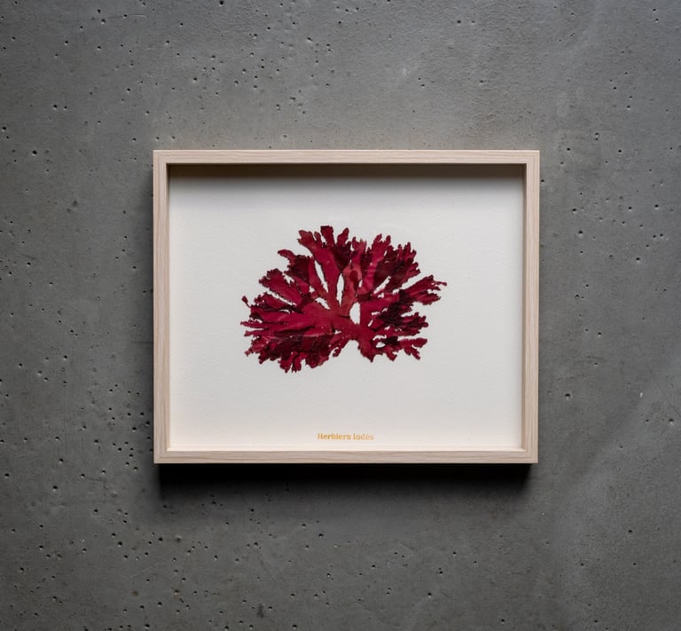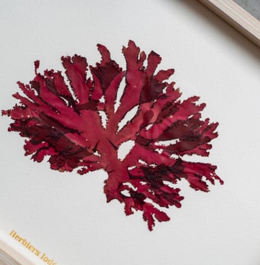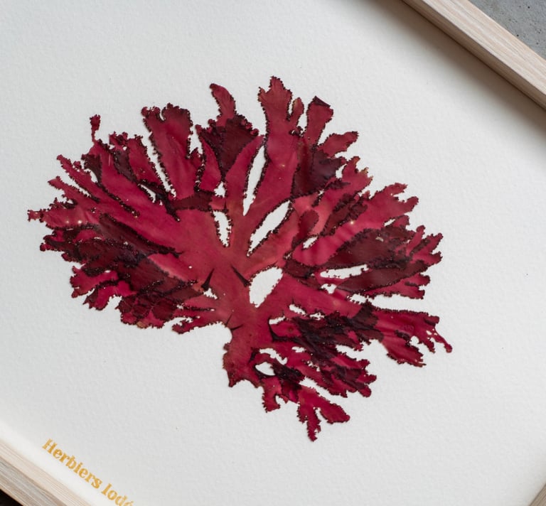 L'alguier, ou herbier d'algues marines, représente une pratique artistique et scientifique qui remonte au XIXe siècle. Contrairement aux herbiers floraux, relativement courants, les alguiers constituent une tradition bien plus rare, presque disparue, qui a vu le jour en Bretagne à des fins d'étude de la biodiversité marine. Aujourd'hui, à Paimpol, je fais revivre cet art ancestral avec une approche contemporaine, transformant les algues du littoral breton en véritables œuvres d'art.