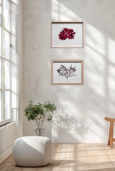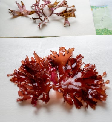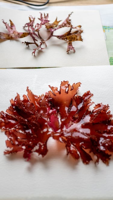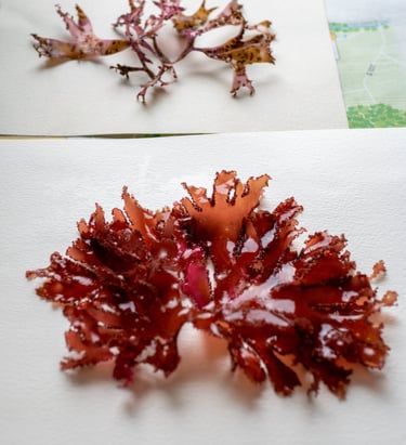 Forte de mon expérience dans la création d'herbiers floraux, j'ai décidé d'adapter cette technique ancestrale aux algues marines du Trégor-Goëlo. Mais là où les frères Crouan poursuivaient un objectif scientifique, mon approche est résolument artistique. Je ne cherche pas à répertorier les espèces, mais à révéler leur beauté intrinsèque, à transformer ces végétaux marins en véritables œuvres d'art contemporain.