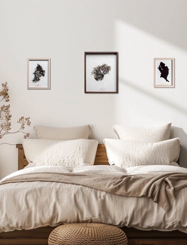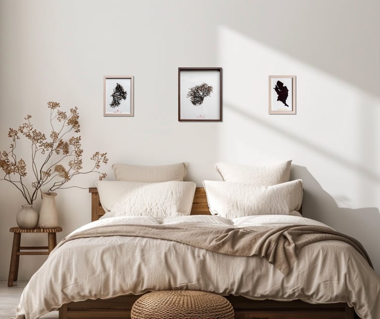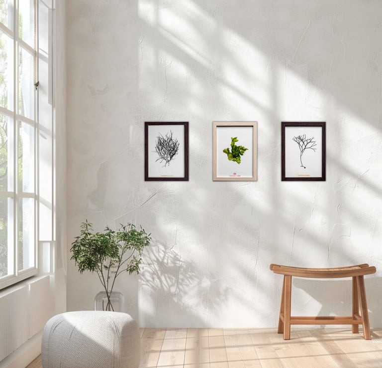 Dans une décoration côtière ou marine, les alguiers constituent évidemment un choix parfait, évoquant directement l'océan et le littoral. Mais ils fonctionnent tout aussi bien dans des intérieurs plus urbains, apportant une note de sérénité zen, un rappel de la nature dans des espaces parfois très éloignés de la mer. Leur palette chromatique naturelle, du vert au bordeaux en passant par les bruns et les beiges, s'intègre facilement à des environnements décoratifs variés.