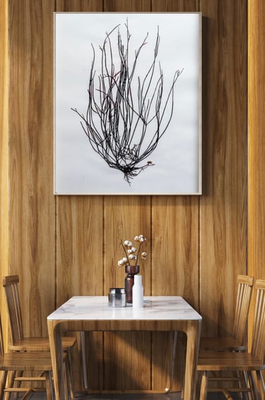 Les alguiers contemporains trouvent leur place dans les intérieurs modernes de manière surprenante. Leur esthétique graphique, épurée, minimaliste parfois, s'harmonise particulièrement bien avec les espaces contemporains. Ils apportent une touche de nature sans l'exubérance parfois excessive des herbiers floraux traditionnels.